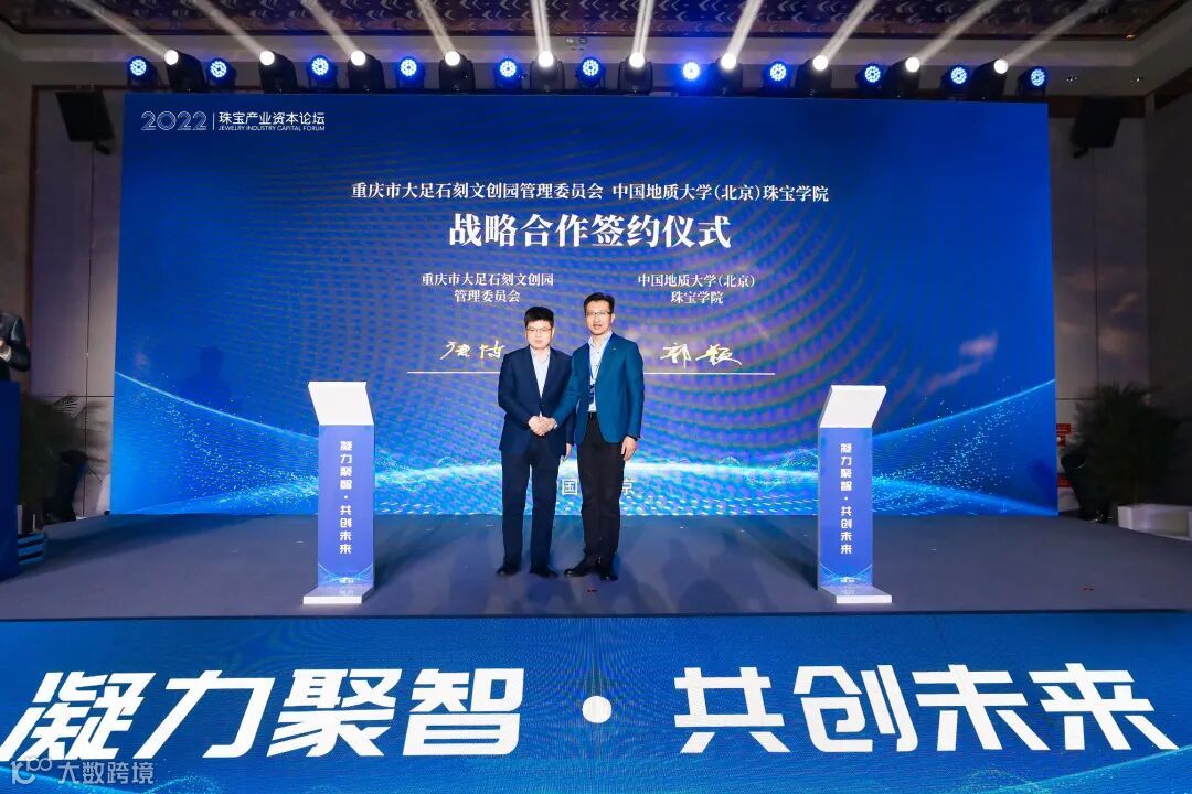 中国地质大学(北京)珠宝学院与大足石刻文创园签署战略合作备忘录。