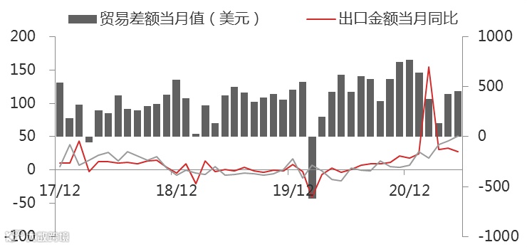 在进口方面,6月按人民币计进口增速同比24.2%,按美元计同比增36.7%。6月国际大宗商品价格维持在高位,支撑进口增速;但南方处于梅雨季,抑制部分生产开工,进口增速边际回落。整体来看,三季度国内经济增速或将边际放缓,投资方面短期内受到房地产投资的支撑,政策调控地方政府有序推进基建项目,预计对企业进口仍有支撑。6月份受到华东地区进入梅雨季节,7、8月份为持续高温天气,从季节性角度看,国内生产端大概率出现放缓。4月下旬到5月下游补库周期来源于1-2月社融的高速投放,6-7月或将重新步入去库阶段,进口增速或处于宽幅震荡。