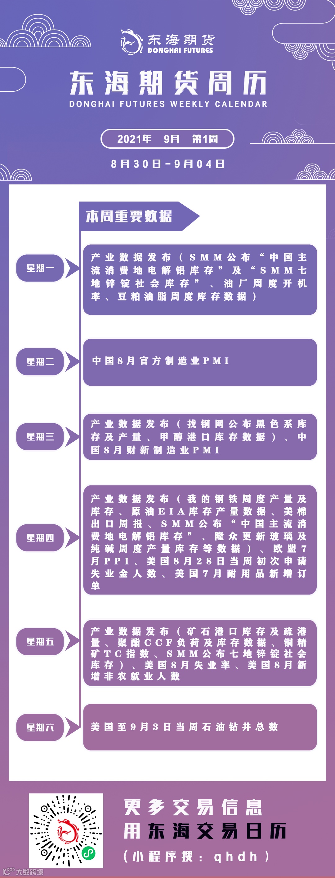 东海期市周历丨本周你需要知道的重要数据(8月30日-9月4日)
