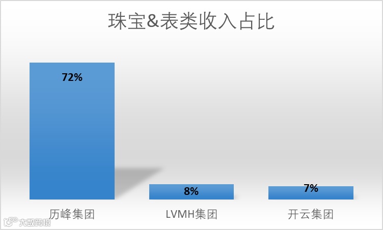 注:历峰集团珠宝业务收入占比51%,表类收入占比21%,远超LVMH和开云