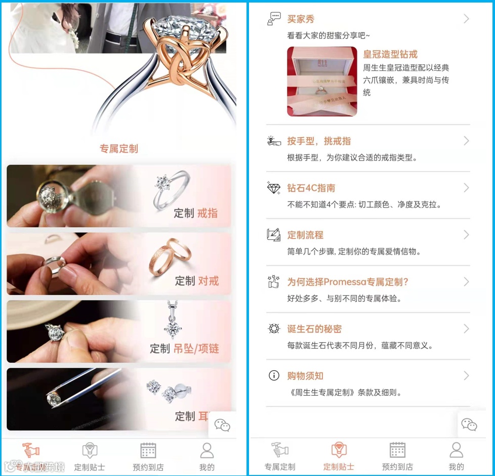 周生生专属定制小程序界面,向右滑动查看更多