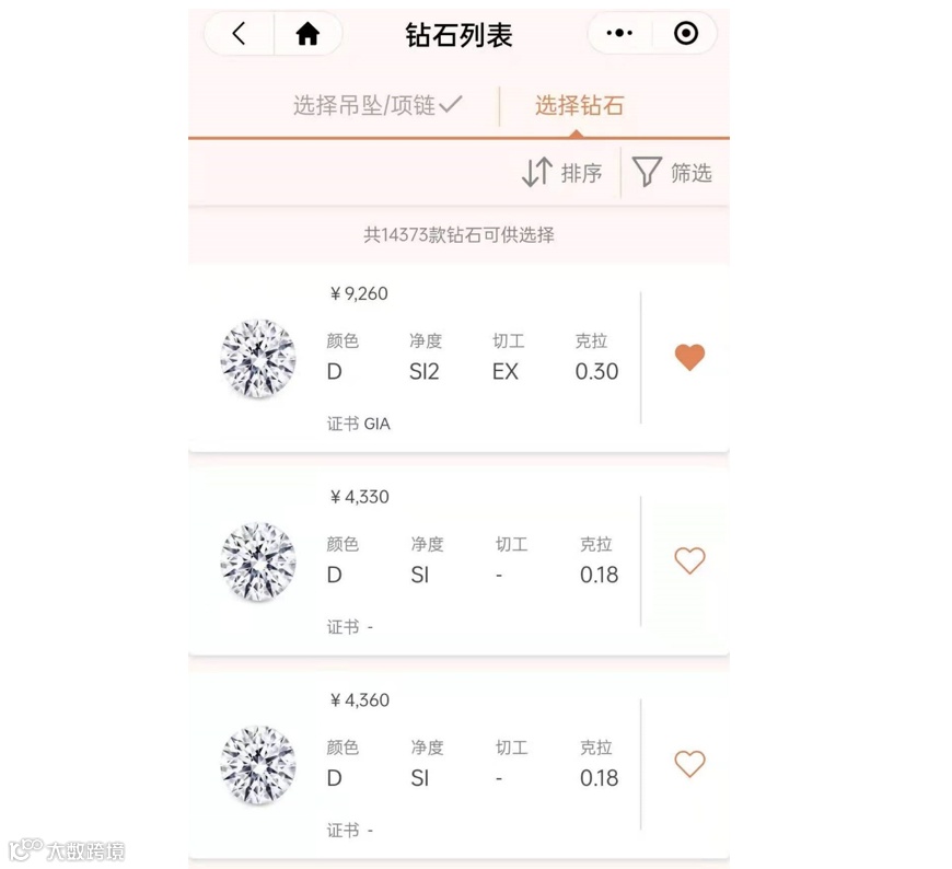 定制服务选钻页面,高度透明化的体验