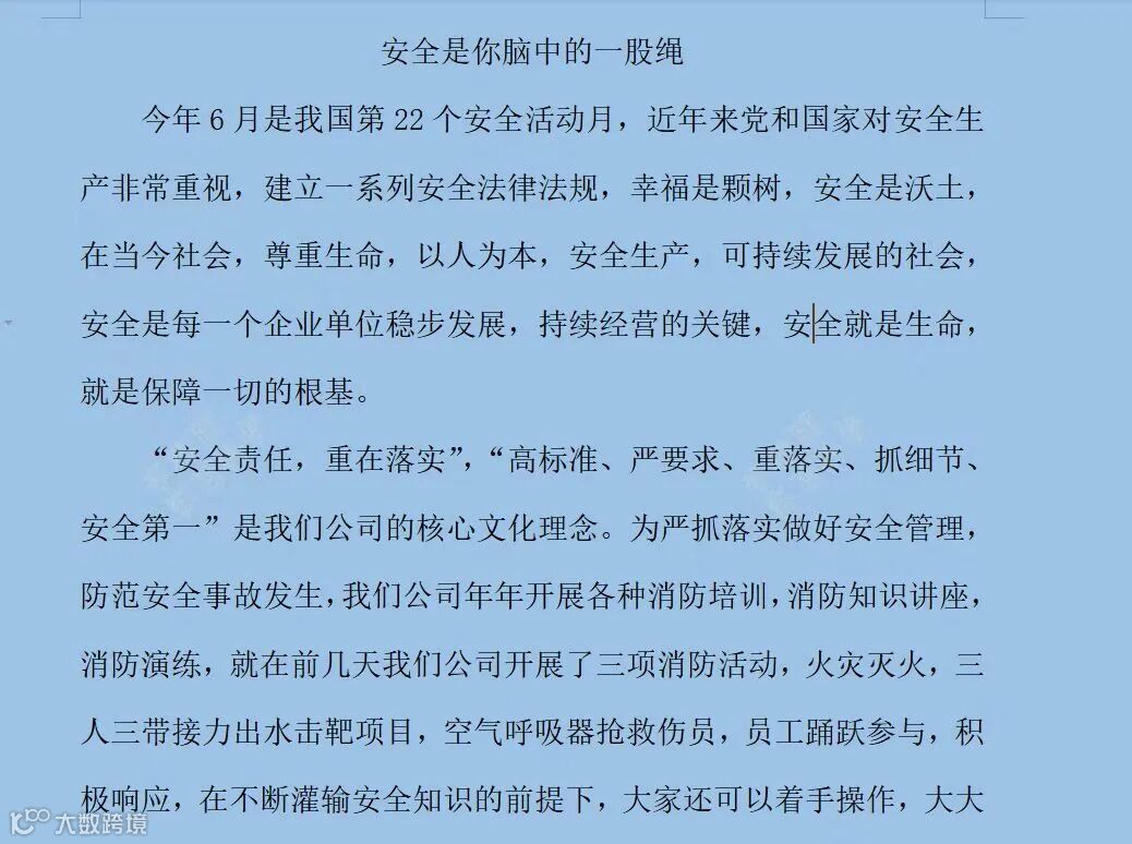 借助信息化平台,组织了全员知识竞赛活动。截止6月30日,在各部门的大力推动与配合下,完成知识竞赛考试达229人次。同时为了激发员工对安全生产工作的关注和思考,开展了美好生活从安全开始话题征集活动,将大家对安全工作及结合工作岗位的所感所想阐述出来,充分调动大家对安全工作的重视程度,牢固安全意识。
