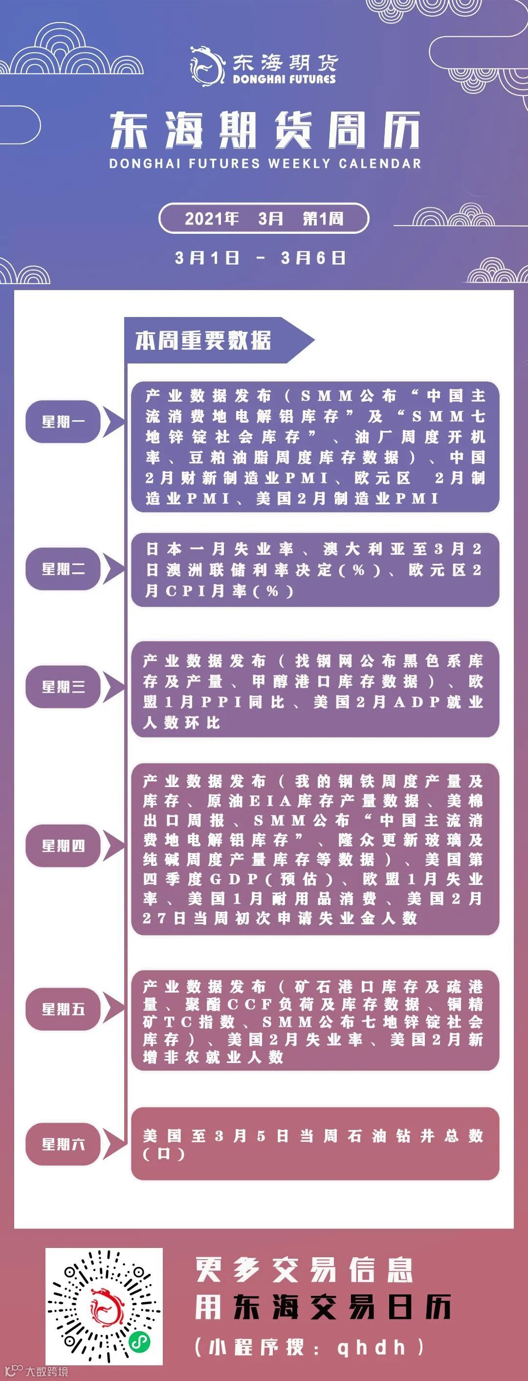 东海期市周历丨本周你需要知道的重要数据(3月1日-3月6日)