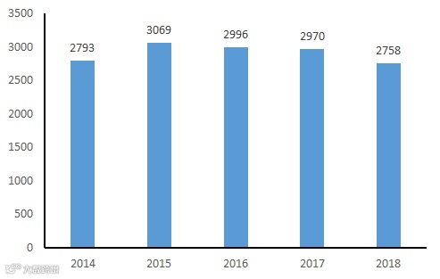 图二、2014~2018年限额以上金银珠宝消费额(亿元)