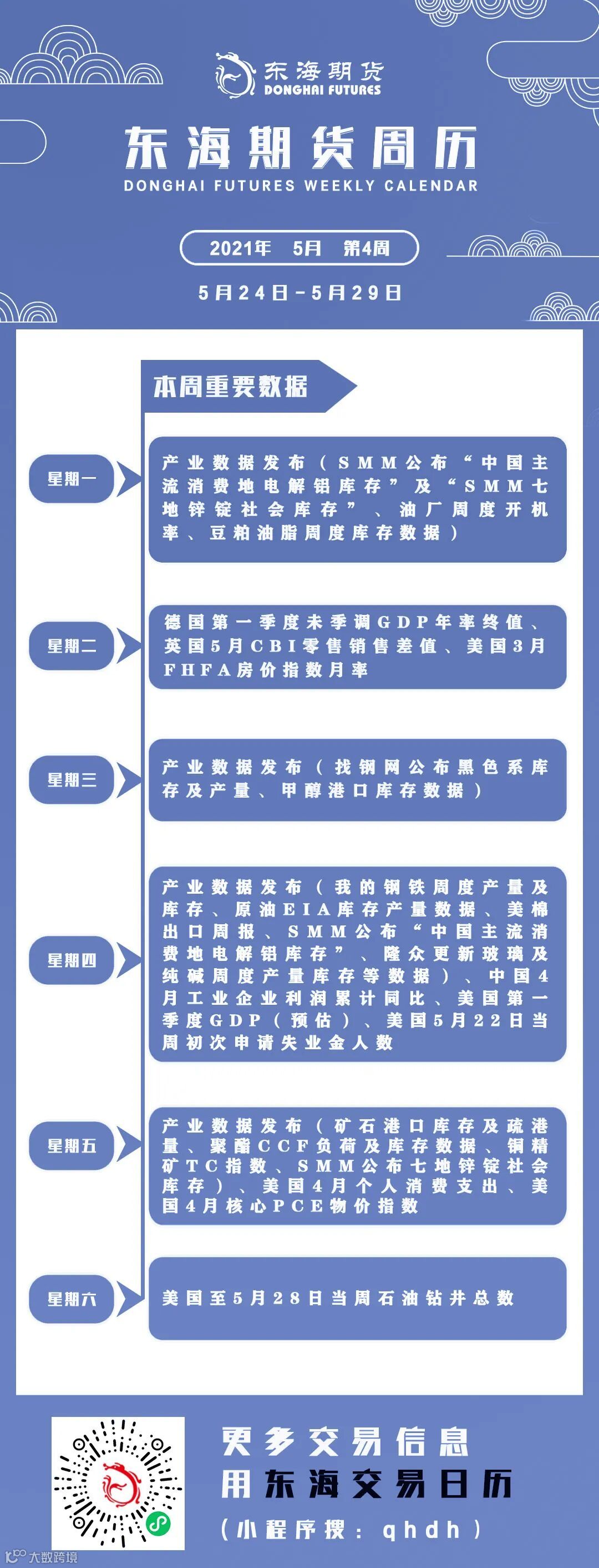 东海期市周历丨本周你需要知道的重要数据(5月24日-5月29日)