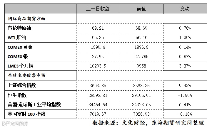 LME 铜开于9964.5美元/吨,收盘报10293.5美元/吨,较前日收盘价涨幅3.37%