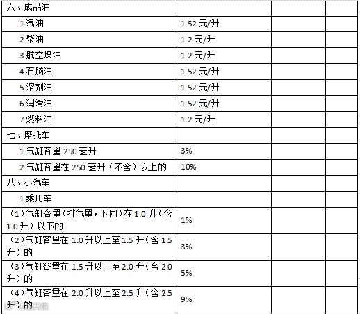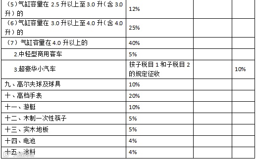 《征求意见稿》税目税率表明确,白酒在生产(进口)环节征税,税率为20%加0.5元/500克(或者500毫升);金银首饰、铂金首饰和钻石及钻石饰品在零售环节按5%征税,其它贵重首饰和珠宝玉石在生产(进口)环节按10%征税;乘用车按照气缸容量,按1%-40%不等的税率征收。