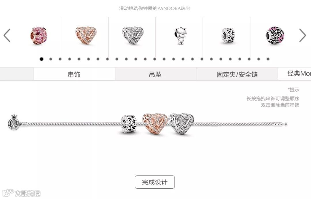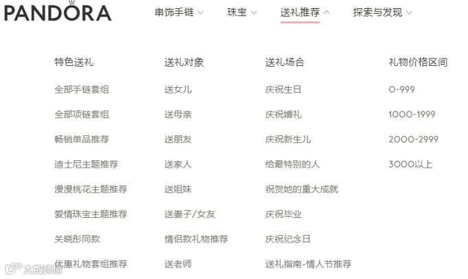 此外,潘多拉自有网站作为其展示产品的重要窗口也极为重要,是“全渠道营销”模式的重要环节。尽管目前珠宝电商化率仍然较低,在线上直接完成的交易占比较小,但品牌网站依然在引导消费者方面起着重要的作用。因此,运用好社交网络媒体、加强自有网站的建设,是传统珠宝品牌营销升级、拥抱年轻消费者的制胜法宝。