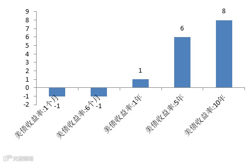 美国国债收益率周变化 单位:bp