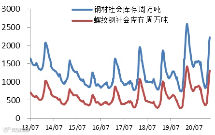 钢材和螺纹钢库存变化
