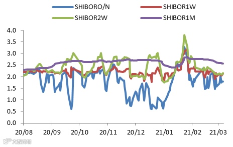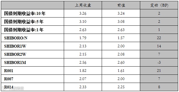同业拆借利率周变化