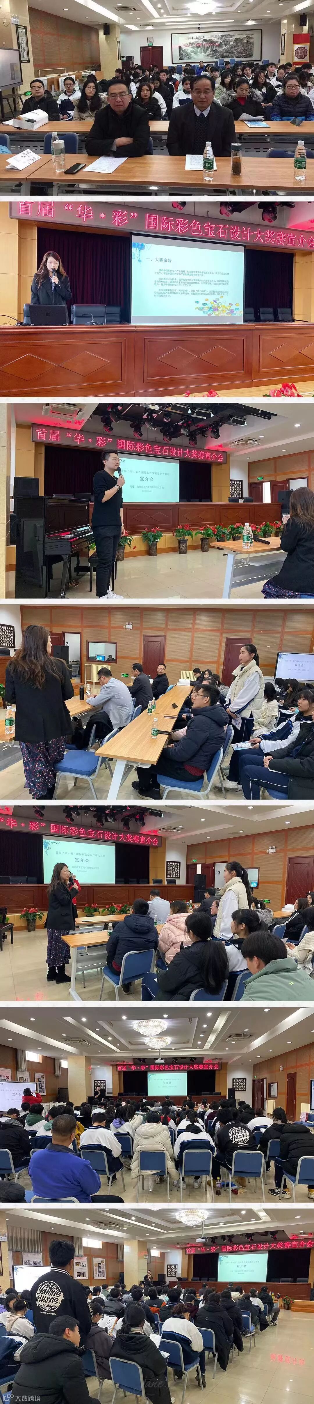 第二场宣介会在中国地质大学(北京)珠宝学院举行,中宝协基金副总经理柳毅主持会议,宝石城管委会负责人王在山致辞并全面介绍昌乐蓝宝石。承办方代表中宝协基金张晓敏对大奖赛规则和理念进行了解读,鼓励母校的学弟学妹积极参与大奖赛,为彩色宝石设计贡献自己的力量。最后,中国地质大学(北京)珠宝学院党委书记何明跃,党委副书记周彦分别为此次大奖赛做了动员,希望广大珠宝学子积极参与,展现地大珠宝学院创作力量。