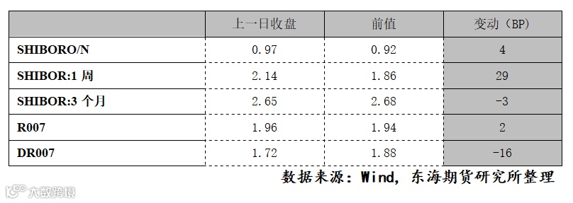 1、 央行公开市场周五开展50亿元7天期逆回购操作,当日无逆回购到期,单日净投放50亿元。上周央行公开市场有5600亿元逆回购到期,上周央行累计进行了550亿元逆回购操作Shibor短端品种多数上行。隔夜品种上行4.4bp报0.965%,7天期上行28.6bp报2.141%。