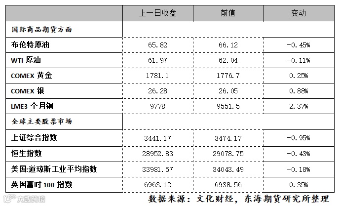 1.核心逻辑:市场对经济及能源需求前景看法乐观,继续提振油市,国际油价连续第四日收涨,欧美原油期货价格创下2021317日以来最高。目前来看,需求端乐观前景继续利好油市,欧洲部分国家面临解封将进一步提振市场气氛,油价运行稳健为主。但疫情引发的忧虑情绪仍在,供应端也存在伊朗等不确定性因素,油价上涨连续性存疑。