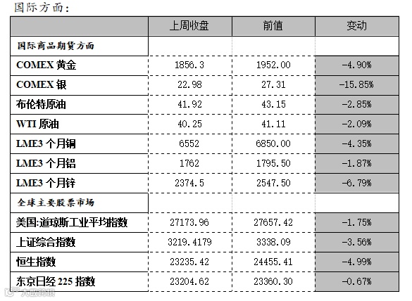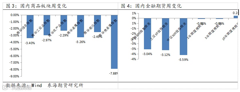 上周国内商品板块大幅走低,股指期货大幅走低,国债期货涨跌互现。
