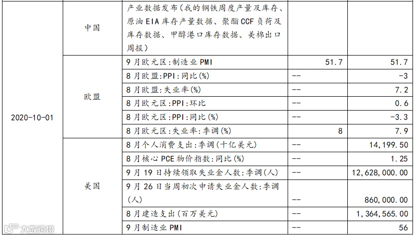 5. 美国9月Markit综合PMI初值小幅下滑,工厂活动的增长被服务业萎缩所抵消,表明因疫情仍在持续,经济失去动力。