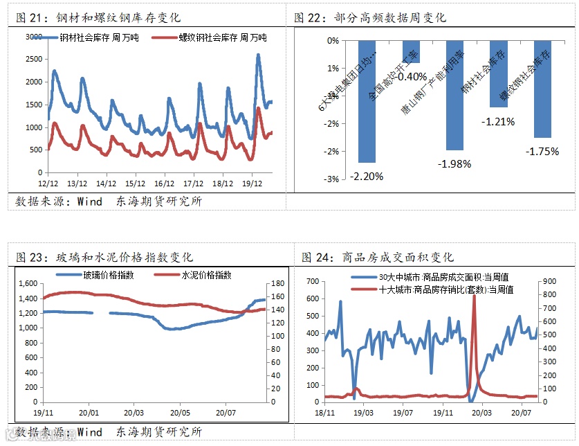 上周商品房销售面积累计同比涨幅扩大,其中,一线城市日均销售面积涨幅扩大,二线城市累计同比跌幅扩大,三线城市同比由负转正。国内乘用车市场零售同比涨幅收窄,煤炭价格表现分化,主要钢材价格下跌。生产端稳中趋缓,大宗商品旺季不旺。