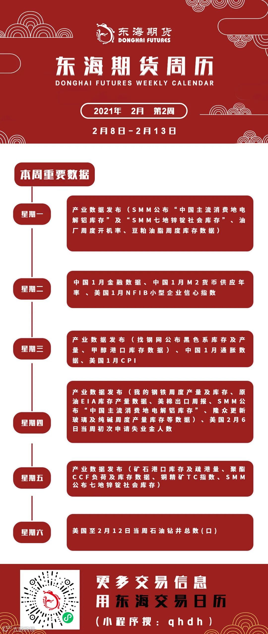东海期市周历丨本周你需要知道的重要数据(2月8日-2月13日)