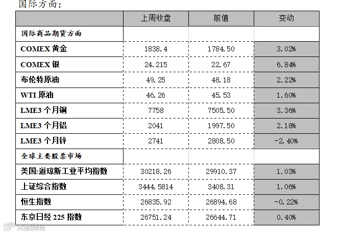 上周市场表现