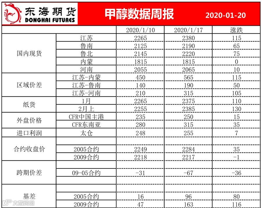 导读:甲醇行情如何?快来看看东海数据周报吧!