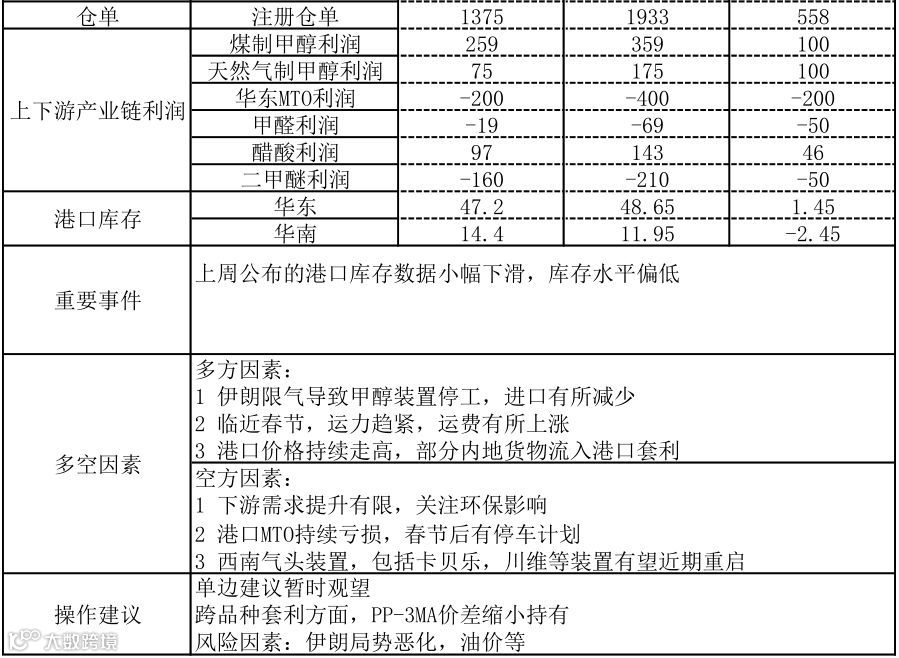 甲醇产业链数据周报20200122