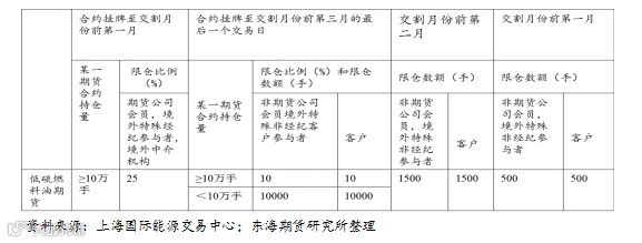 低硫燃料油期货合约最后交易日前第三个交易日收市后,客户、非期货公司会员、境外特殊非经纪参与者的卖出持仓,不得超过其持有的标准仓单数量,最后交易日前第二个交易日起对该客户、非期货公司会员、境外特殊非经纪参与者的超出部分持仓直接由能源中心强行平仓。