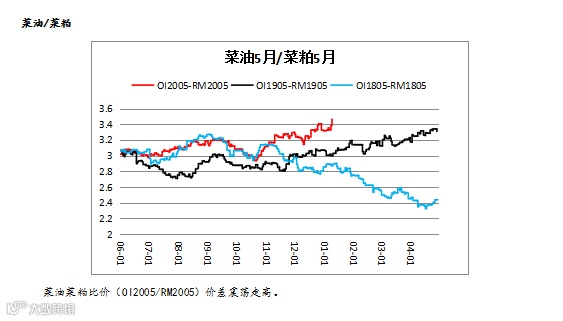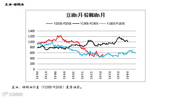 1、 马来和印尼两大主产国棕榈油产量不及预期,马盘棕榈油大幅上涨,提振包括豆油在内的油脂涨势明显。油脂仍然看涨。另一方面,受中美签署第一阶段协议、中国增加美豆采购预期,以及国内非洲猪瘟疫情反复、冬季水产饲料需求淡季以及杂粕替代的影响,令豆粕库存回升,豆粕价格疲软。建议关注买豆油抛豆粕套利策略