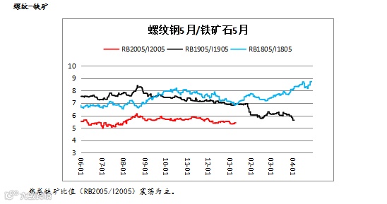 2、 目前螺纹价格接近电炉钢成本,电炉钢企业后期或将逐步减产。与此同时,热卷利润修复后扩产动力相对较强,与螺纹产量走势背离,卷、螺产量或呈现一增一减的走势。需求端看,一季度之后基建投资力度加大,利多螺纹下游消费。策略上可关注多螺纹05空热卷05的套利策略。