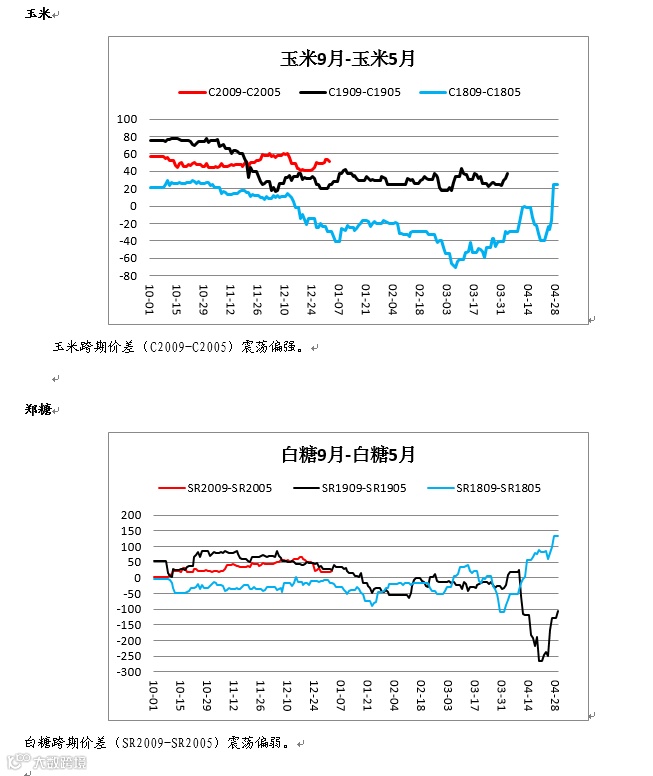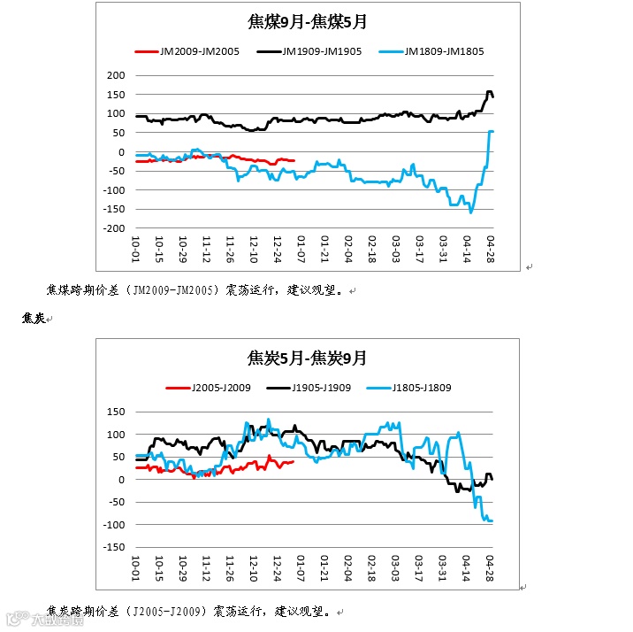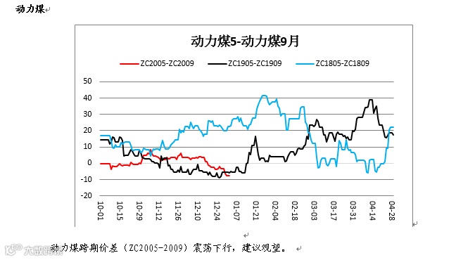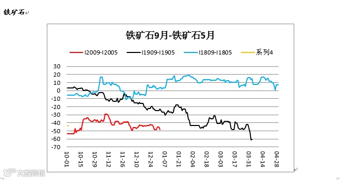 铁矿跨期价差(I2009-I2005)低位震荡,建议观望。
