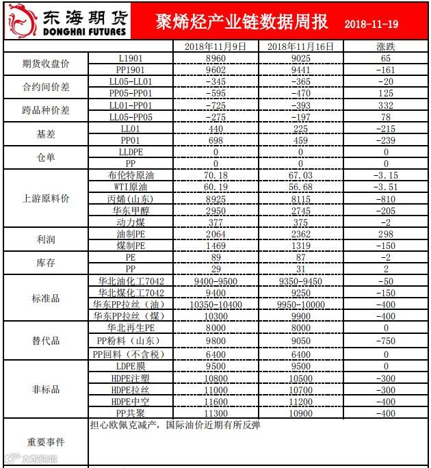 聚烯烃数据周报20181119
