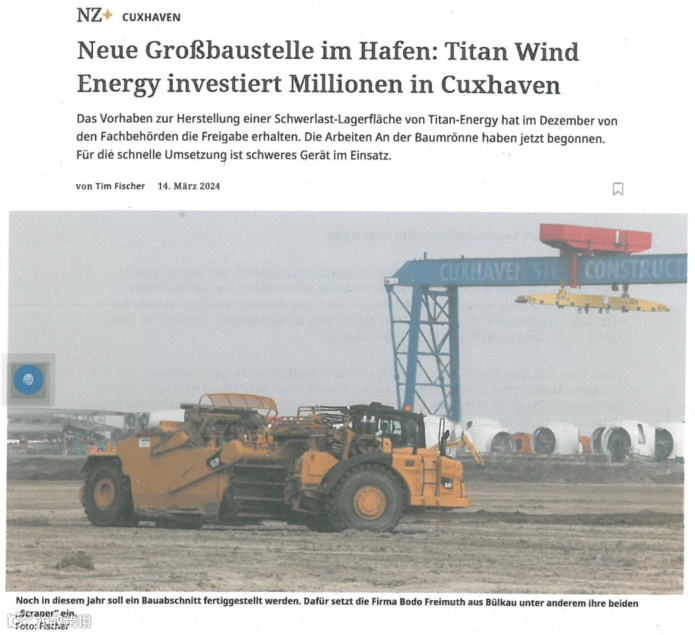关于天顺德国海工基地施工情况的当地报道