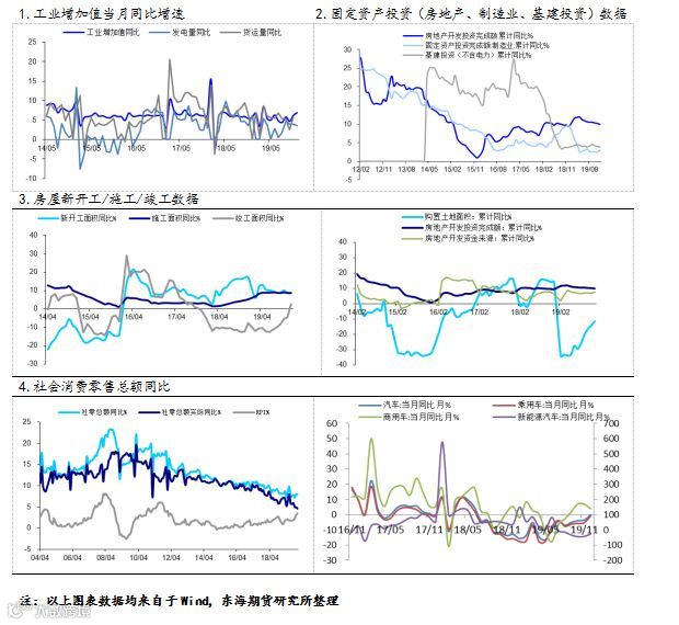 2019年房地产投资增速9.9%,较11月份数据回落0.3个百分点。先行数据多数下行,商品房销售面积同比增速回落至-0.1%,新开工面积增速回落至8.5%;竣工面积加速上行至2.6%;施工面积增速平稳。去年三季度以来销售面积持续好转,从结构上看三四线城市销售回暖明显,主因房企在资金收紧背景下加快推盘和促销,房地产投资资金来源仍有保障,短期仍将呈现出韧性。步入2020年,房地产施工重心整体后移,更关注销售和建安投资这两核心变量的走势。预计上半年大宗商品需求短期看仍平稳;但随着新开工面积和竣工面积的裂口加速收窄,大宗商品走势出现分化。