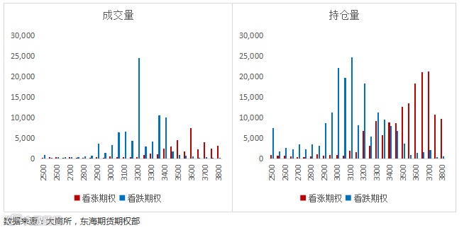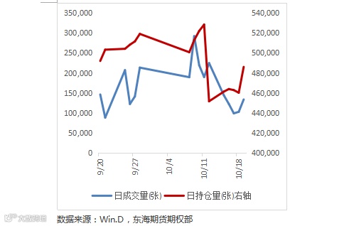 一般经验认为缴纳保证金的期权卖方属于资金优势者,通过分析卖方的持仓行权价来分析大资金倾向的压力位和支撑位。截止10.19,成交量多集中3200附近,持仓量上,看涨期权集中在3600-3700,看跌期权集中在3100附近。目前资金面的压力位上移至3600附近,支撑位还是在3200附近。