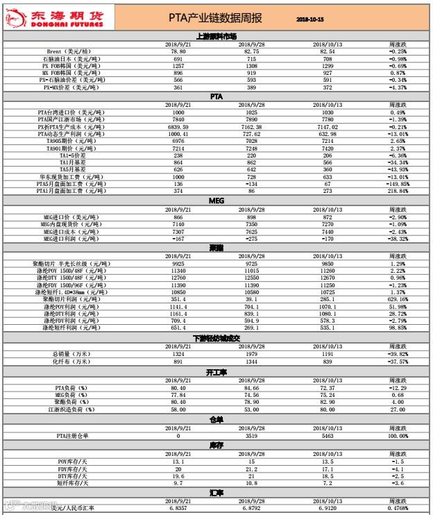 PTA产业链数据周报20181015