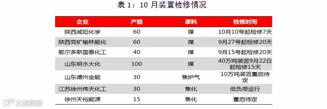 国内新增产能方面,内蒙古新奥,安徽昊源等已于上半年投产,产能将陆续释放。而鲁西化工,瑞星化工继续推迟,晋煤华昱30万吨装置在9月份投产,由于产能释放需要一段时间并且产能相对较小,对市场影响有限。