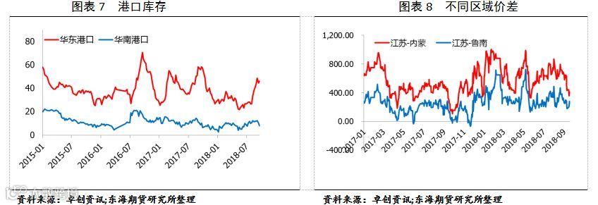 库存方面,9月以来,华东港口库存由月初49万吨下滑到46万吨,华南港口库存由月初的12万吨,减少到8万吨。港口库存持续下滑,开始进入去库存状态,目前库存处于历史同期的低位。