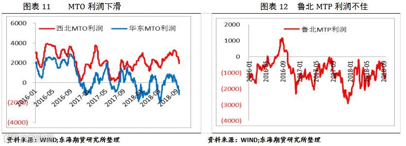 新兴下游,烯烃外采甲醇接近1500万吨,其中华东MTO装置外采约800万吨,山东MTO/MTP装置外采约350万吨,沿海MTO装置对于甲醇的需求举足轻重。但是目前甲醇制烯烃利润仍然不佳,下游产品比较单一的企业更是持续亏损,部分装置开始降负运行,其中中原乙烯20万吨装置目前8成负荷运行,山东联泓化工40万吨装置目前7成负荷运行,山东阳煤恒通目前7成负荷运行,西北的两套60万吨装置,即中煤蒙大和神华新疆由于原料成本过高,也有降负运行的预期,未来对于甲醇的需求有所减少,这对甲醇价格的上涨有一定牵制。