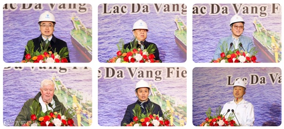 集团董事长严俊旭、新加坡瀚辰精英集团董事长张志强、墨菲石油公司项目经理William Harry Gallery,越南石油技术服务总公司(PTSC)总裁 Chai Jia Jun分别致辞。