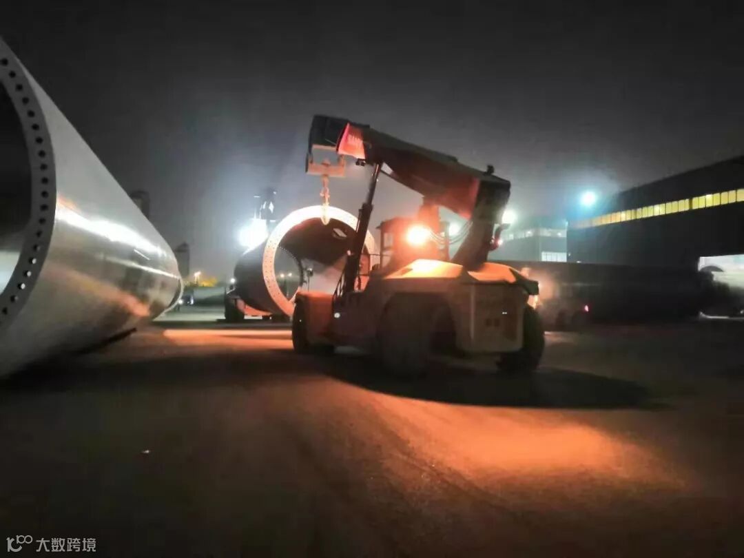 为了保障风机塔筒的如期交付,包头公司的堆场外一派繁忙景象,指挥声、人员交流声、车辆起步声,……夜已深、寒风至,但这里的人员却丝毫没有懈怠,有条不紊地坚守在自己的工作岗位。