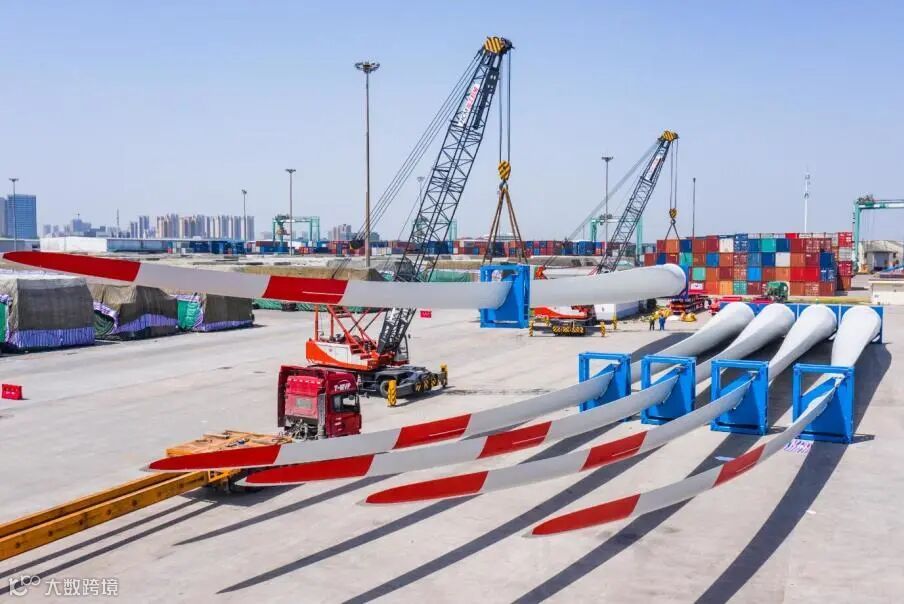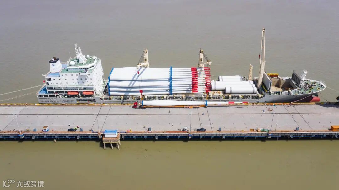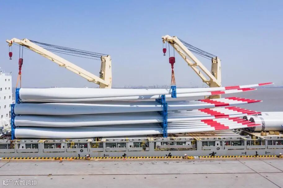 4月30日,位于长江入海口的常熟港一派繁忙景象,由天顺风能集团常熟叶片公司生产的10套风电叶片首次在常熟港内陆续装船,随后将运往越南。