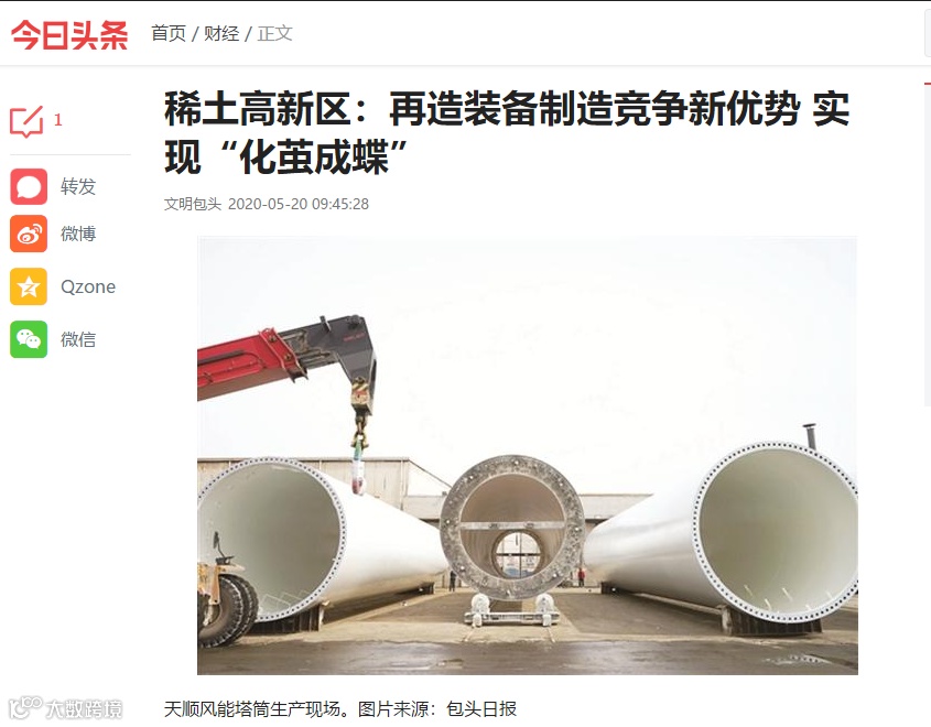 2020年5月,包头市稀土高新区电视台及报社记者来到天顺风能包头工厂进行了专题采访。我公司做为稀土高新区乃至包头市重点龙头企业,在2020年一季度纳税、技术创新、疫情之下复工复产及2020年的预计产能等几个方面表现卓越,得到地方政府的肯定。电视台对天顺风能集团设备事业部总裁、集团副总裁陈伟明进行了详细采访,并在稀土高新区电台、包头新闻网、今日头条等各大新闻媒体进行了播报。