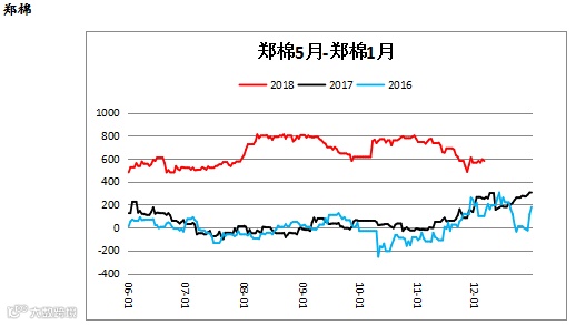 棉花跨期价差(CF1905– CF1901)企稳震荡,未来行情有待观望。