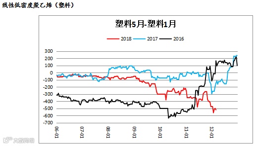 线性低密度聚乙烯价差(L1905– L1901)快速下行。
