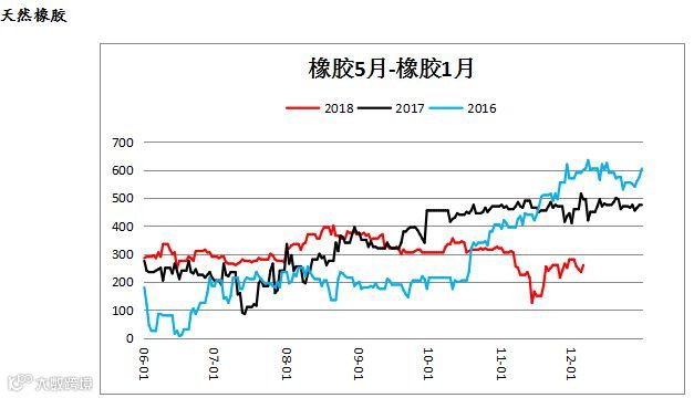 天然橡胶跨期价差(RU1905– RU1901)触底回调。