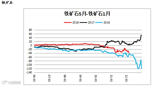铁矿跨期价差(I1905-I1901)小幅震荡,建议观望。