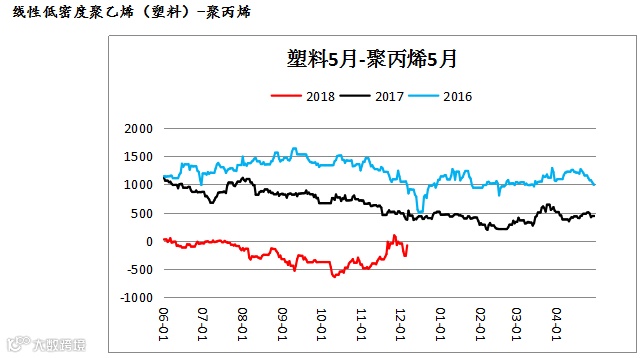 塑料聚丙烯价差(L1905– PP1905)高位震荡,未来行情有待观望。