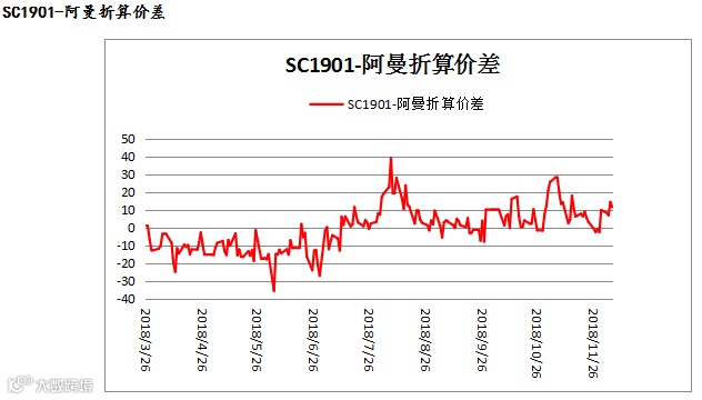 上期所SC1812收盘价与阿曼原油价差宽幅震荡。