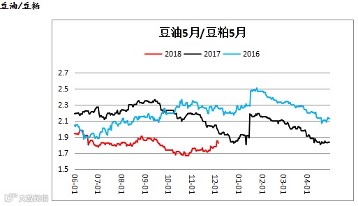 豆油豆粕价差(Y1905–M1905)价差震荡走高。
