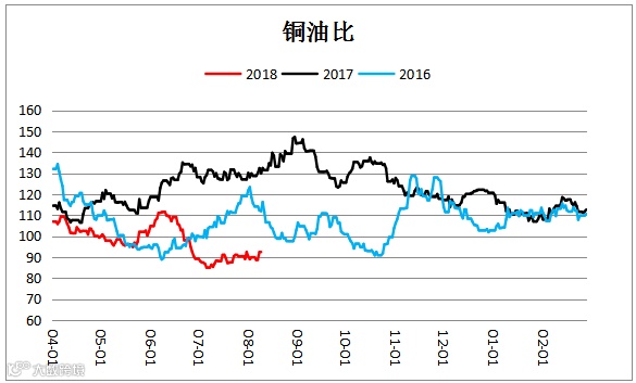 沪铜伦铜比(CU1810/LMES-铜3)区间震荡。